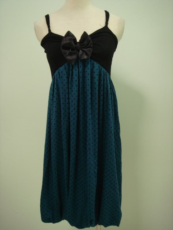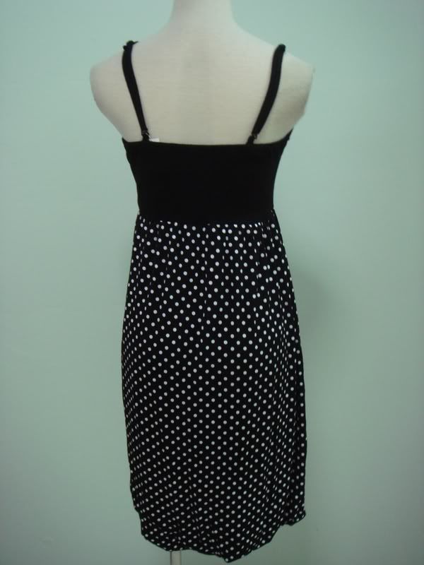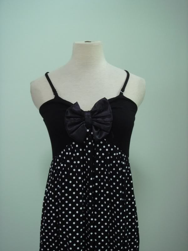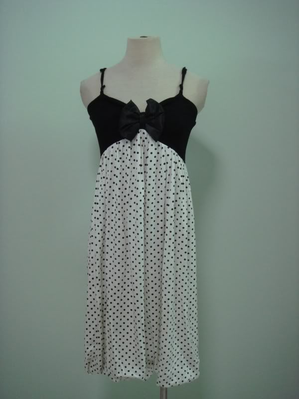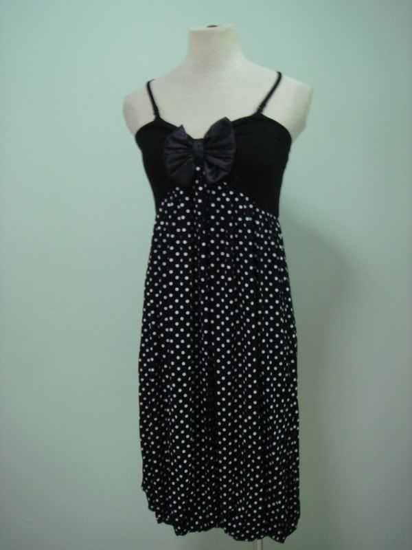 Spagethi Ribbon Polka-Dot Bubble Dress. (Black, White & Green- Free Size)